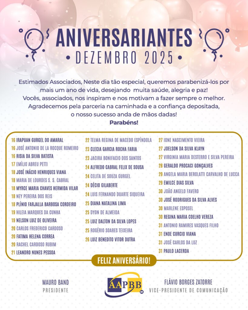 Aniversariantes de Dezembro: 16 a 31/12/2025